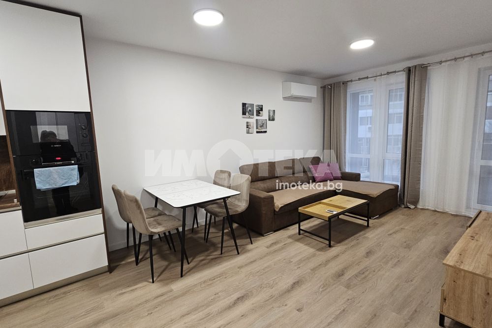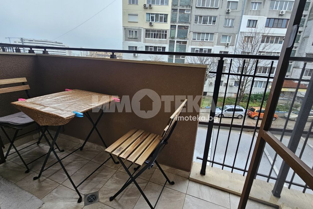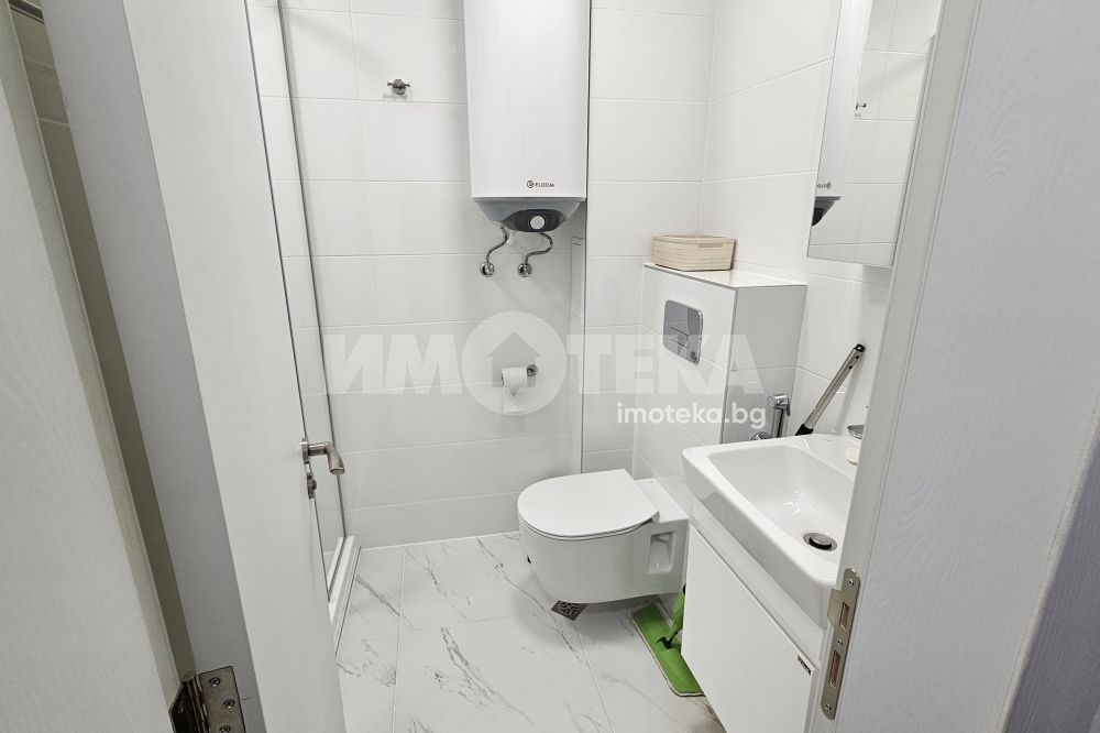 Чисто нов , луксозно обзаведен двустаен апартамент. Оборудван с висок клас електроуреди. Входно антре, баня с тоалетна, голям дневен тракт, спалня и тераса пред двете стаи. ПОДЗЕМНО ПАРКОМЯСТО към имота!