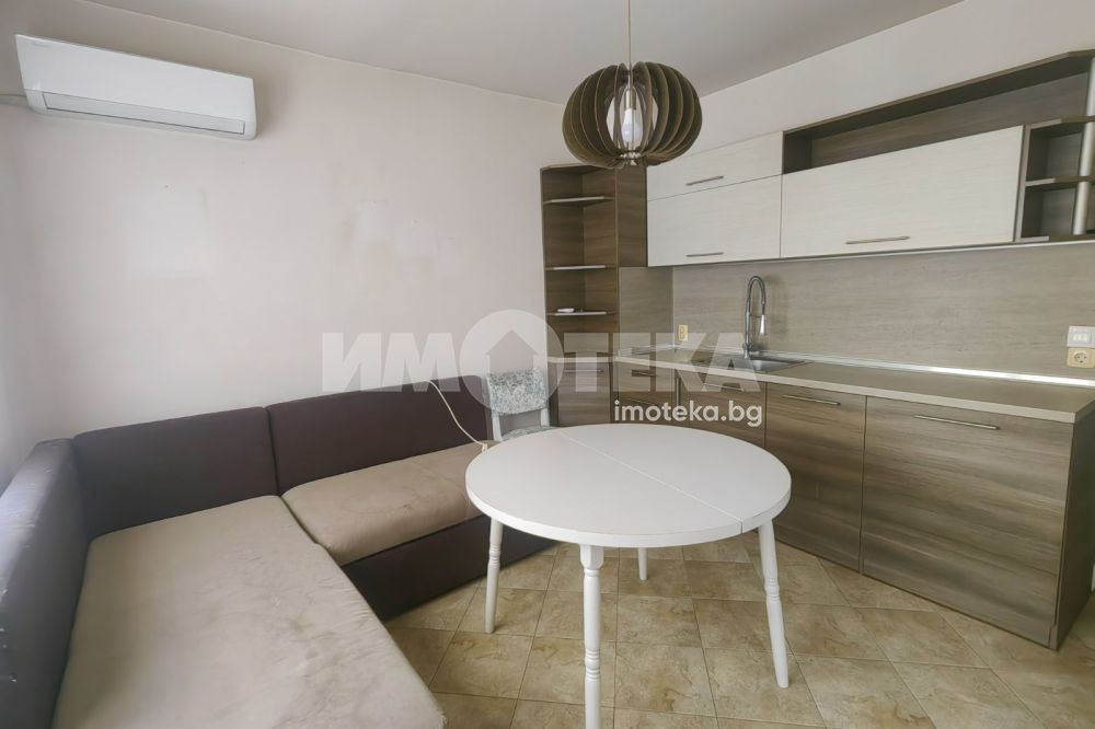 Южен апартамент. Предлага се частично обзаведен, в отлично състояние. Представлява кухня ( печка на терасата), стая с трикрилен гардероб и трета стая - необзаведена, санитарен възел, две тераси, една остъклена и една отворена, килер. Възможно е закупуването на пералня и хладилник. Отопление - два климатика.