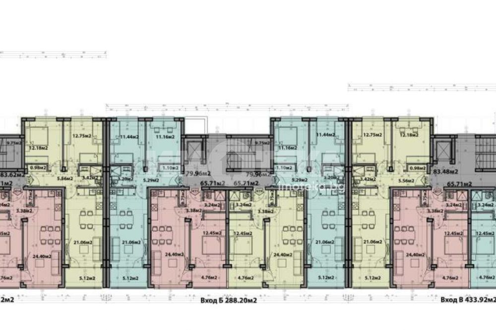 Сградата е на четири етажа с три входа. Общия брой на апартаментите в комплекса е 62 жилища с площ от 53 до 100 кв.м.