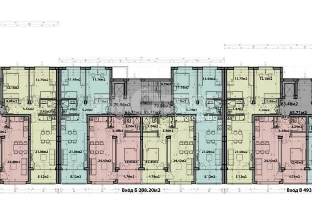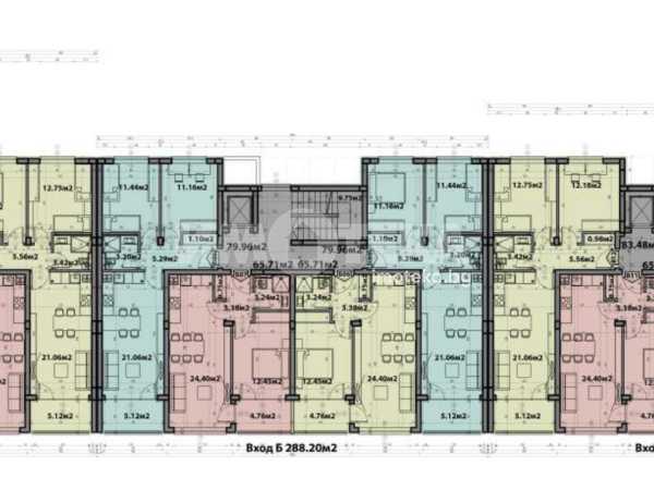 Сградата е на четири етажа с три входа. Общ брой на апартаментите в комплекса - 62 жилища с площ от 53 до 100 кв.м.