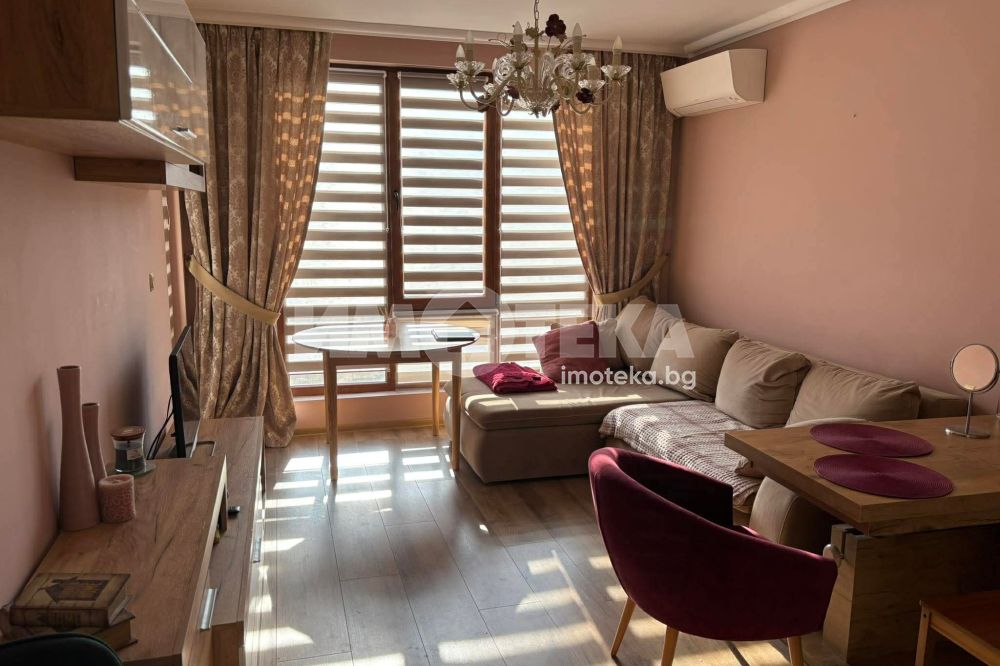 Двустаен апартамент с югозападно изложение. Жилището се състои от дневна, спалня, килер, баня с тоалет и лоджия. Апартаментът е обзаведен и готов за нанасяне.