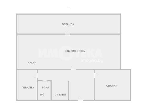 Разпределение-1етаж-Просторна дневна,кухня и трапезария-55кв.м,спалня-14кв.м,баня+тоалетна-4,10кв.м,перално-7,40кв.м