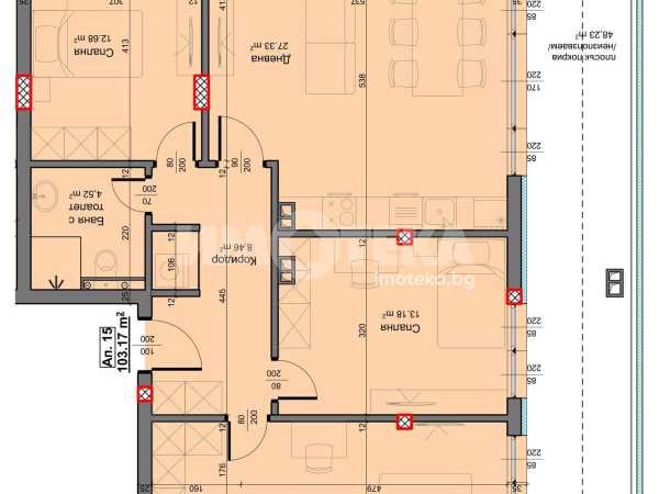 Многостаен апартамент в новострояща се жилищна сграда в кв. Виница. Жилището се състои от просторна дневна с кухненски бокс, три спални, две бани с тоалети, килер, голяма тераса с площ от 50 кв.м. Апартаментът се издава завършен по БДС. Възможност за покупка на открити и закрити паркоместа.