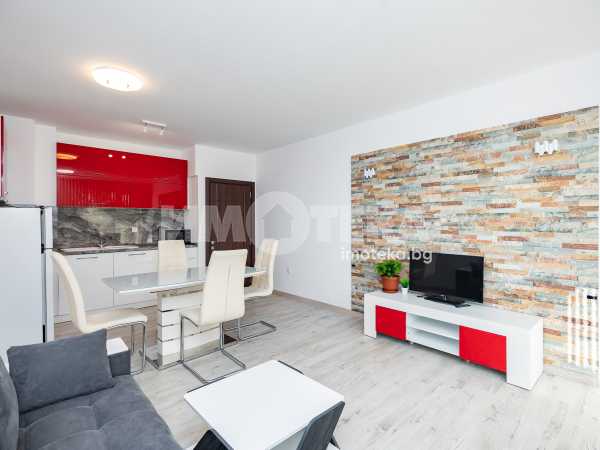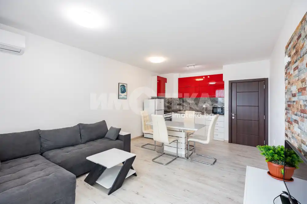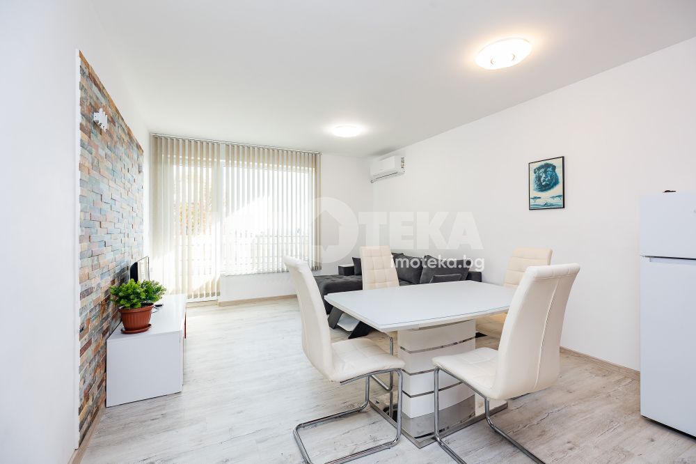 Тристаен южен апартамент с паркомясто в нова жилишна сграда в централната част на квартал Виница. Апартамент разположен на трети етаж в сграда с асансьор. Разпределение - дневна с кухненска част с площ от 28 кв.м. с тераса, две спални 14 и 12 кв.м, баня с тоалетна, килер и мокро помещение и коридор. Жилището е ново, напълно обзаведено и оборудвано. Апартаментът разполага с избено помещение.