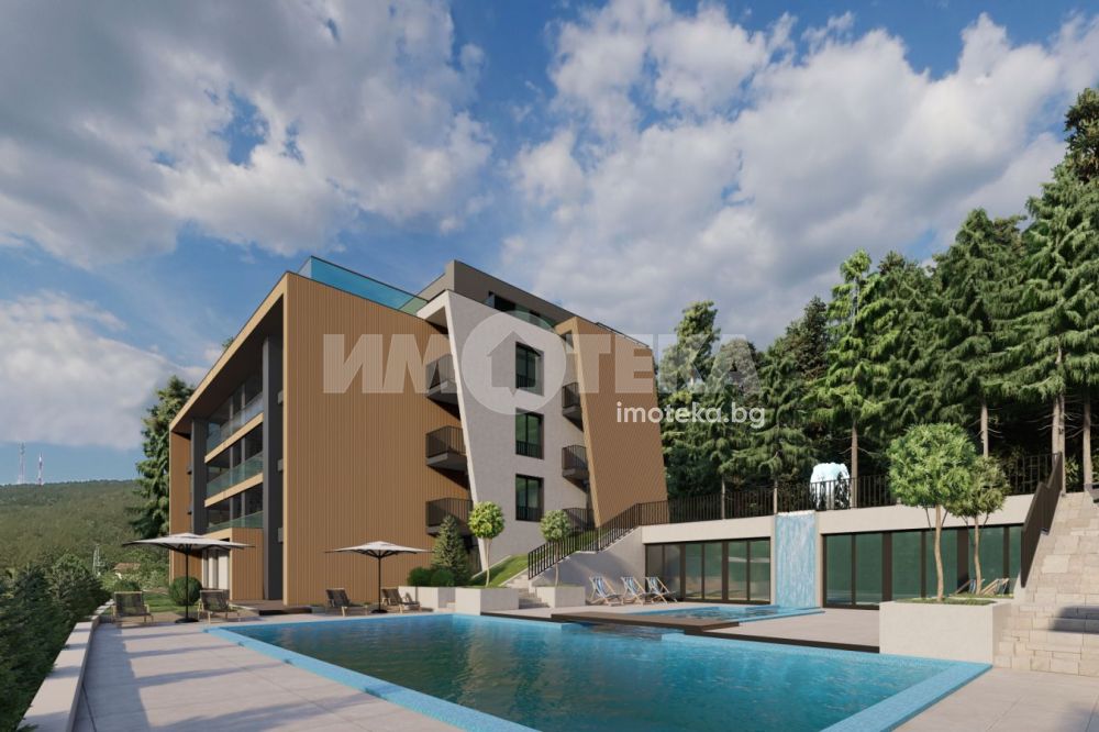 Луксозно жилищно строителсто, басейн, гора с усещане за живот в къща.