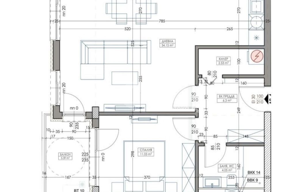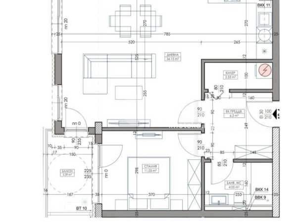 Апартамент – Дневна с кухненски бокс, спалня, баня с тоалетна, килер, входно преддверие, балкон. Имотът е с обща площ 86,48 кв.м, което включва 73,23 кв. м чиста площ и 13,25 кв.м общи части.