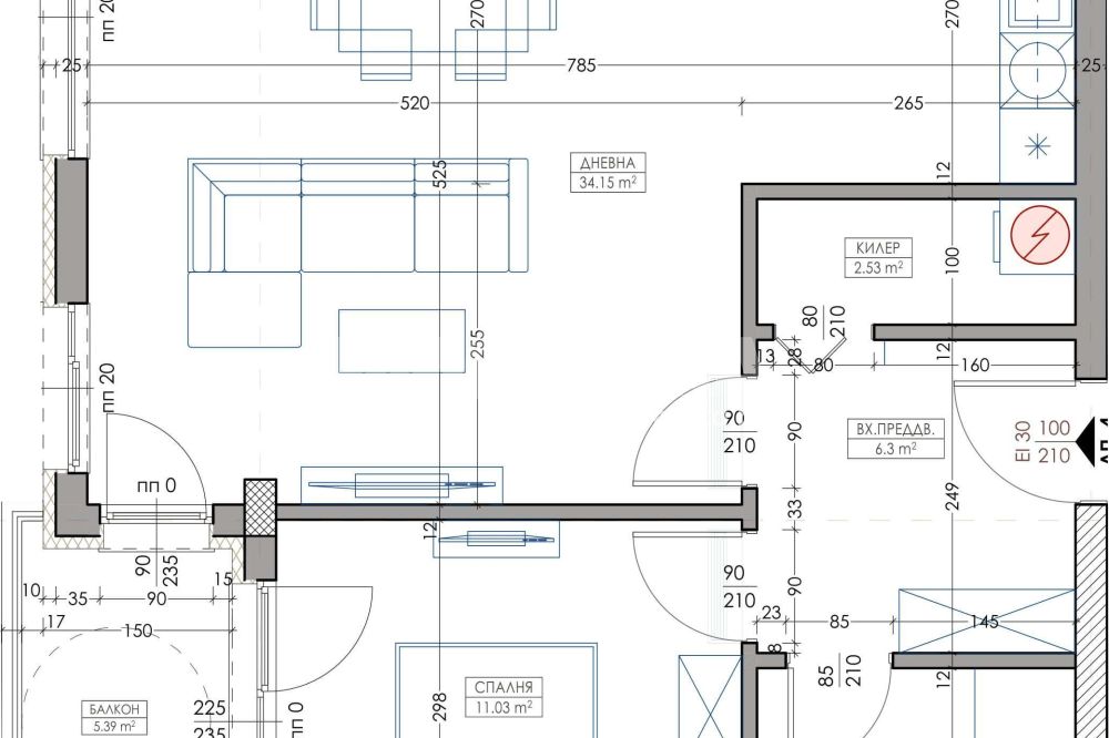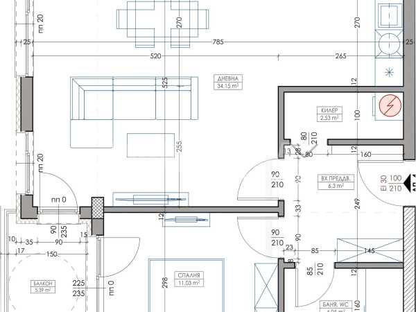 Апартамент – Дневна с кухненски бокс, спалня, баня с тоалетна, килер, входно преддверие, балкон. Имотът е с обща площ 86,48 кв.м, което включва 73,23 кв. м чиста площ и 13,25 кв.м общи части.