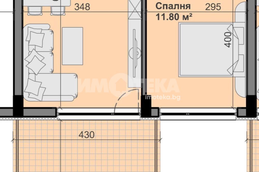 Стандартен двустаен апартамент с югоизточно изложение, състоящ се от: