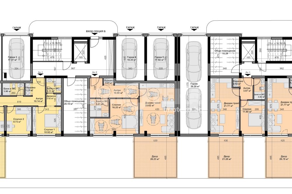 Формата на сградата е правилна с модерна и изчистена визия, постигнати с най-висок клас материали.