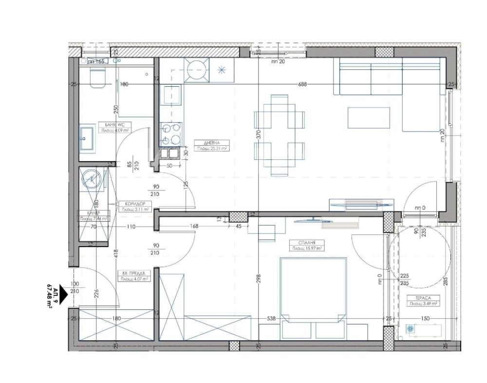 Сградата е удобно разположена, гарантирайки слънчева светлина и чудесни гледки от всеки жилищен етаж. Отстоянието от съседните сгради осигурява усещането за простор и свобода, а близостта до парка предлага възможност за релаксация сред зеленина и природа. Не пропускайте възможността за предлаганите гъвкави начини на закупуване!