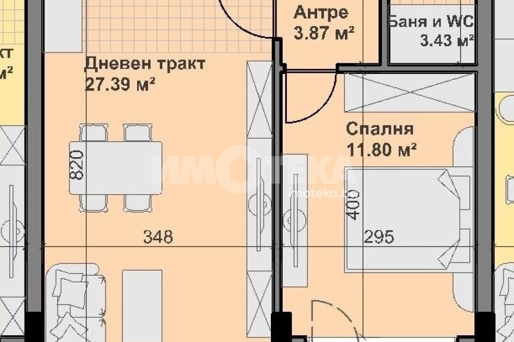 дневна с кухненски бокс - 27 кв.м