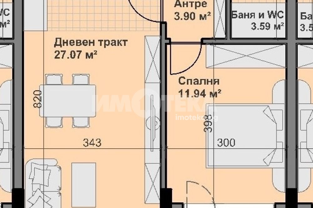 дневна с кухненски бокс - 27 кв.м