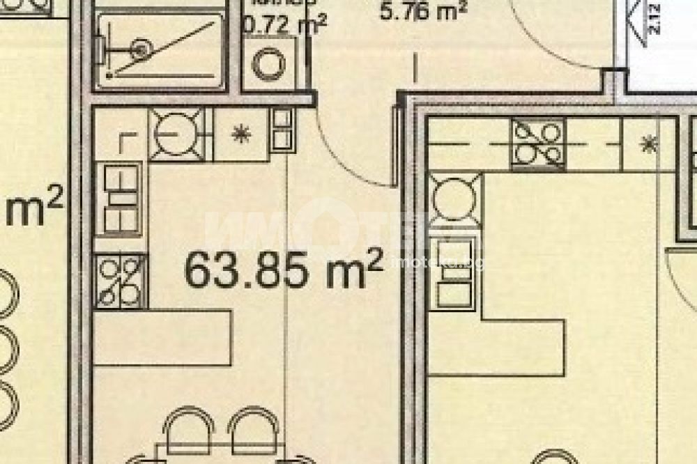Двустаен апартамент на две изложения. Южен дневен тракт, северна спалня, една тераса на дневната, коридор, килер-перално, обща баня с тоалет.