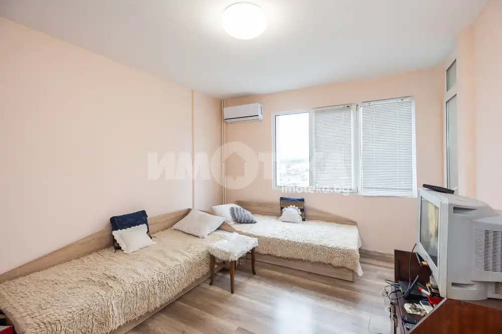 Гарсониера 42 кв.м, находяща се в ж.к. "Владислав Варненчик". Състои се от кухня, спалня, баня с тоалет, антре, тераса. Към имота има мазе 6 кв.м.