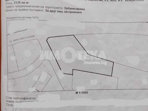 Предлагам за продажба уникален 2125 м2 парцел за строителство в чертите на кв. Владислав Варненчик, ул. Янко Мустаков. Парцела е ъглов, с южно изложение, и правилна форма.