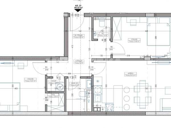 Апартамент – Дневна с кухненски бокс, спалня, баня с тоалетна, килер, входно преддверие. Имотът е с обща площ 62,33 кв.м, което включва 52,73 кв. м чиста площ и 9,60 кв.м общи части. Към апартамента е включен и двор 124,61 кв.м.
