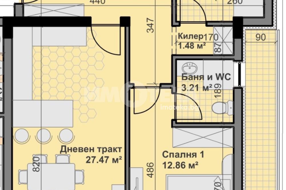 Просторен тристаен апартамент с голяма тераса и югоизточно изложение.