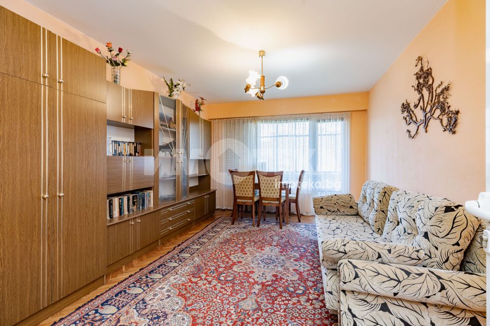 Просторен и светъл Тристаен апартамент. Жилището разкрива функционално разпределение с три стаи, отделна кухня, две сервизни помещения, килер и две тераси, предлагащи усещане за простор и уют. Апартаментът е с подменена дограма и интериорни врати, а във всекидневната е обособена втора кухня – практично решение с допълнителни възможности за комфорт и гъвкавост. Изложение изток-запад.