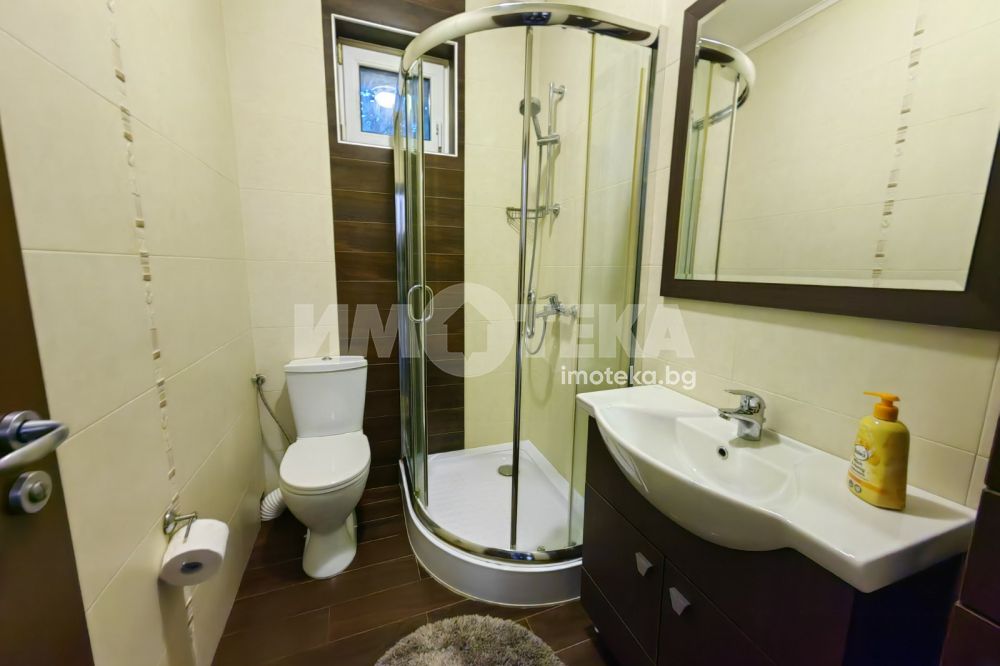Самостоятелна къща с 700м2 двор в м-ст Телевизионна кула. Къщата е на един етаж и се състои от голям дневен тракт с кухненска част, три спални две бани с тоалет, килер и коридор. Третата спалня може да се дообзаведе. Отопление с камина и климатици.