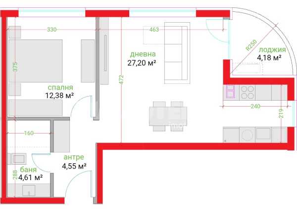 Ексклузивно! Двустаен тухлен апартамент в новопостроена жилищна сграда. На с площ от 77 кв.м са разположени дневна с кухненски бокс, спалня, коридор и баня с тоалет. Жилището разполага и с прилежащо избено помещение от 5 кв.м. Състоянието е БДС. Сградата е с разрешение за ползване Акт 16 от 2025 година.