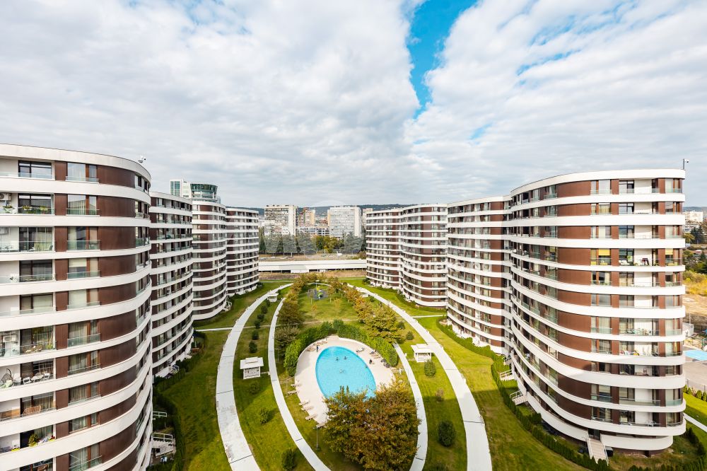 Двустаен апартамент с панорамна гледка в нова сграда с модерна визия, озеленен двор, басейн и паркоместа. Състои се от дневен тракт с кухненска част, спалня, антре, баня-тоалет с преддверие и две широки тераси тип лоджия. Възможност за покупка на паркомясто пред самия вход на сградата.
