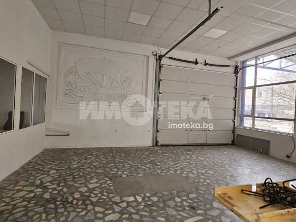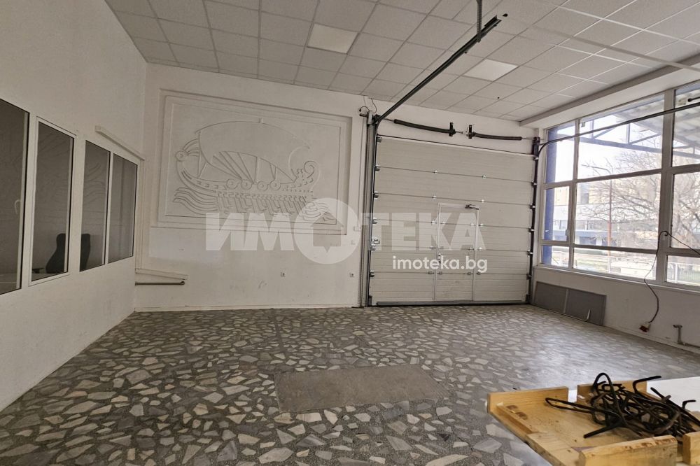 Сграда - напълно самостоятелна, предназначена за производствена дейност в леката промишленост с район - Западна Промишлена Зона. Имотът е с РЗП 1300кв.м, разположени на 2 етажа с различно разпределение. Първото ниво /650кв/ - партер се състои от кухня, трапезария, съблекални и стаи за персонал, санитарни възли, производствени помещения с h 2,8m. ,които могат да се използват и за складова дейност. Всички комуникации са обновени, трифазен ток, локално парно, някои работни помещения са с климатизация. На второ ниво /650кв/ са разположени производствени помещения с височина на таваните 3.5м. , рампа за товаро-разтоварна дейност с удобна тераса/външна платформа, която е покрита за безопасност на стоките, товарен асансьор между двете нива. Състоянието е много добро. Сградата има тир паркинг с условия и за настаняване /баня/ за шофьорите, както и подход, възможност за краткотрайно паркиране на камиони. Наемодателят може да предоставя мотокар за почасово ползване на наемателя. Статутът е на "столова".