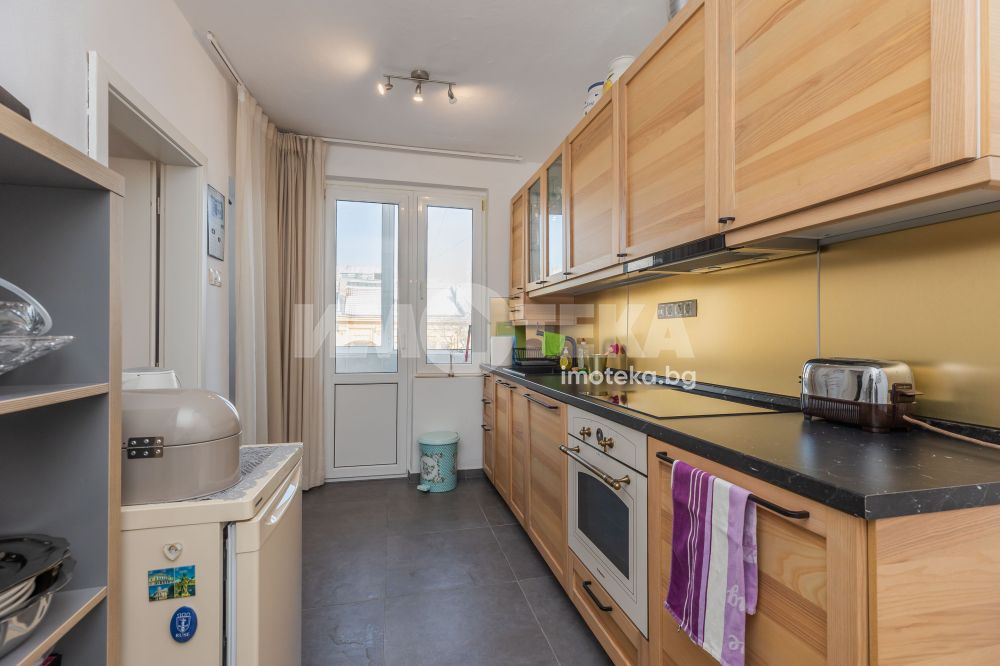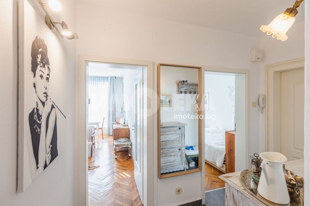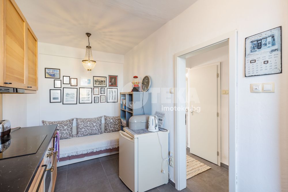 просторен и светъл хол с южно изложение, уютна спалня, отделна кухня, баня с тоалетна, килер, просторен коридор, балкон с уникална гледка към Варненска гара.