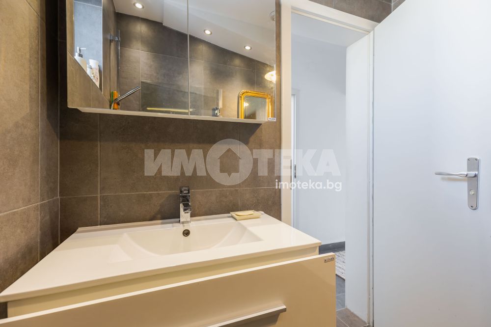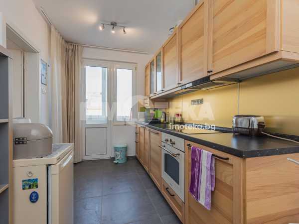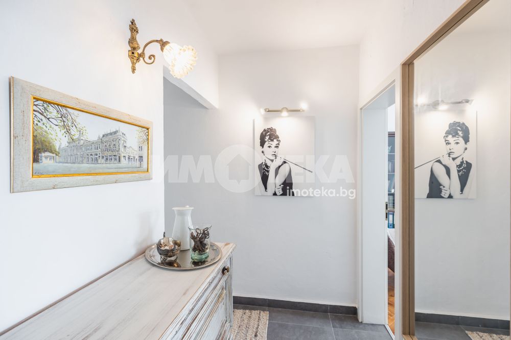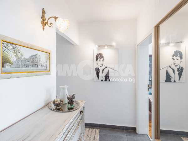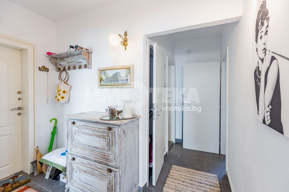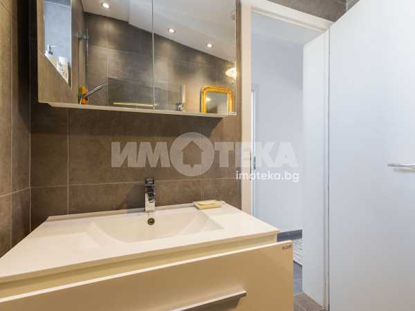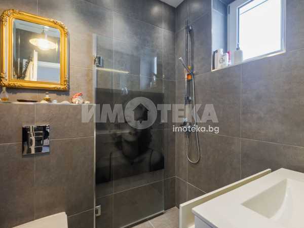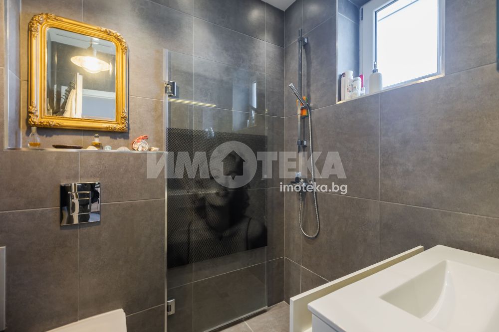Интериорът е решен с вкус и внимание към детайла – комбинация от естествени материали, меки цветове и мебели, които създават усещане за уют и завършеност. Имотът се предлага напълно обзаведен, готов както за незабавно нанасяне, така и за отдаване под наем.