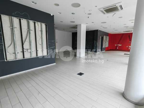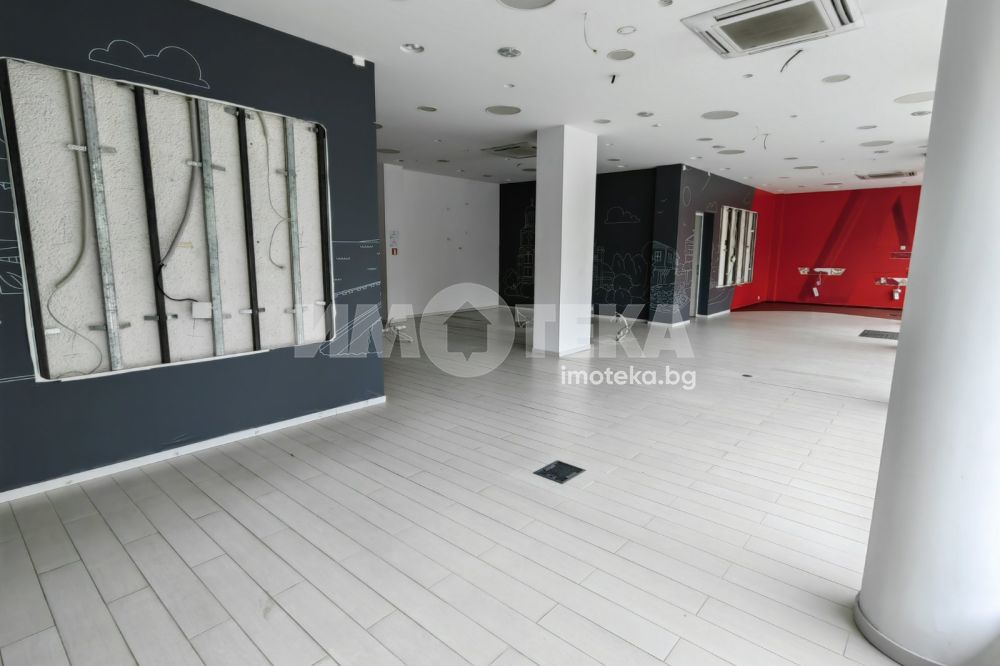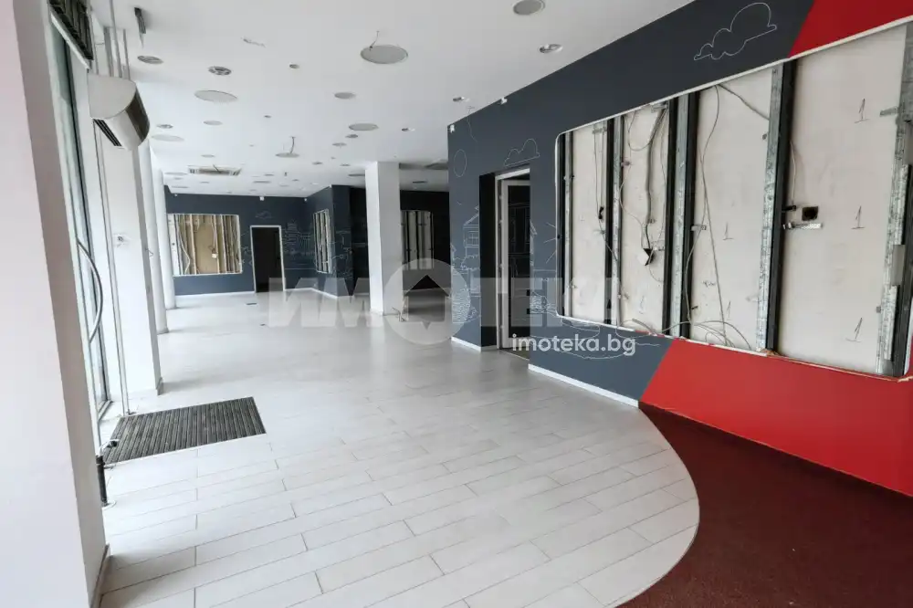 Магазин под наем с лице към оживена улица, изцяло на партер. Състои се от едно общо помещение, офисна част със склад, санитарен възел. Големи витрини, окабеляване за СОТ, трифазен ток, климатична инсталация, високи тавани. Възможност за отваряне на заден вход за зареждане.