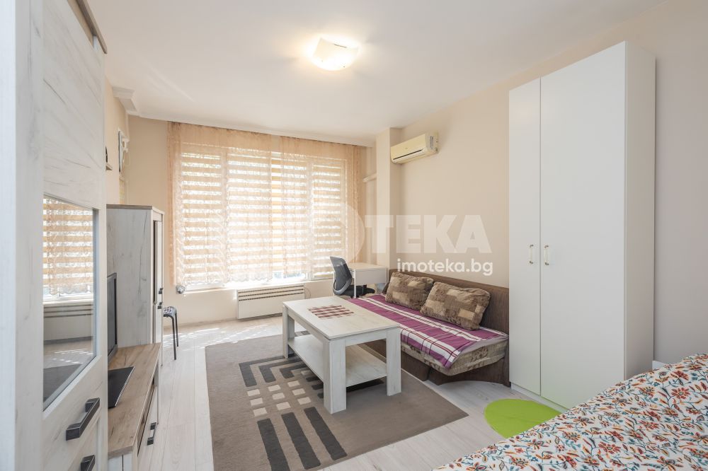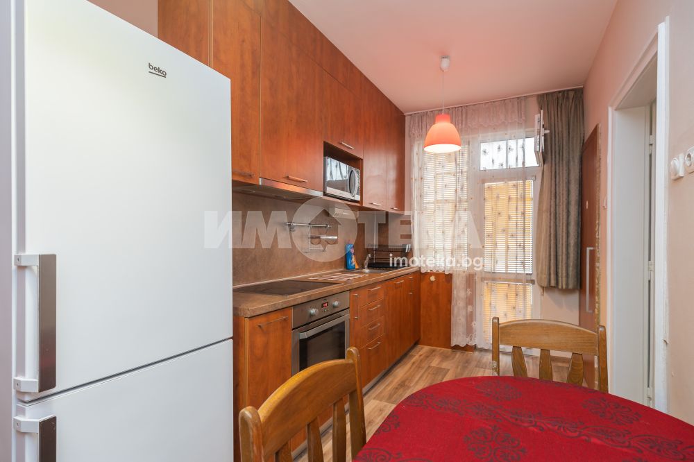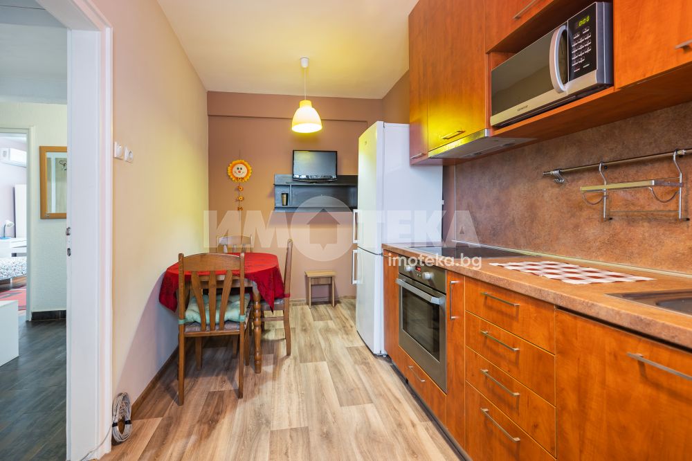 Тристаен апартамент в непосредствена близост до плажната ивица и идеалния център града. Жилището е добре поддържано и напълно обзаведено. Състои се от кухня с трапезария, хол, който е подходящ и за спане, спалня, баня с тоалетна, килер, 2 тераси. Отопление и охлаждане с климатик. За наематели без домашни любимци.