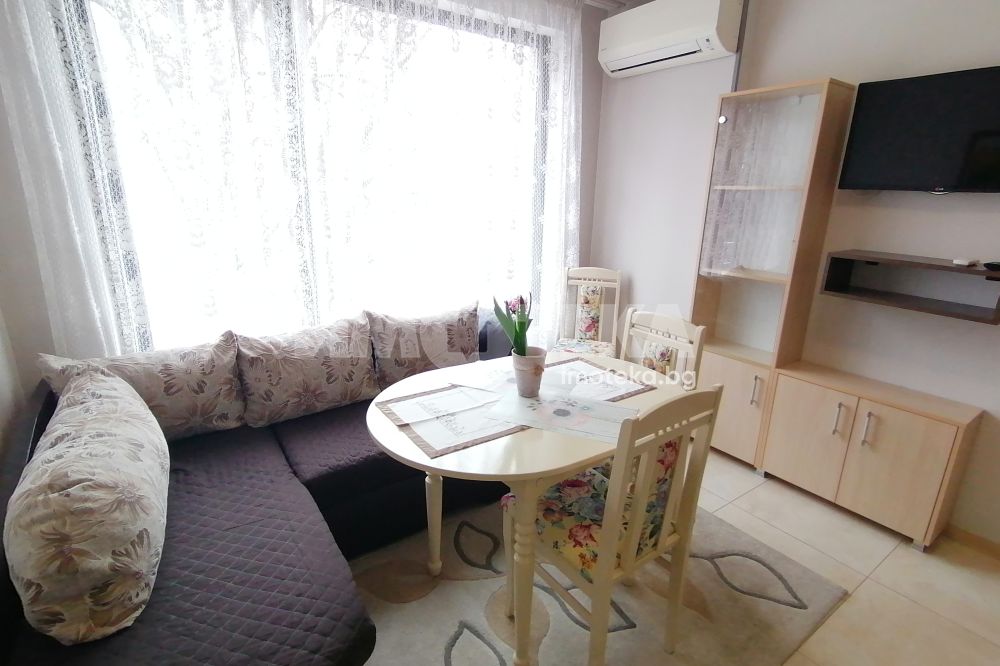 Предлагаме Ви уютен и кокетен двустаен апартамент, находящ се в нова и луксона жилищна сграда в района на Мак Драйв. Жилището се състои от входно антре, дневна с кухненска част, спалня, баня/тоалетна, тераса. Отоплява се посредством климатик.