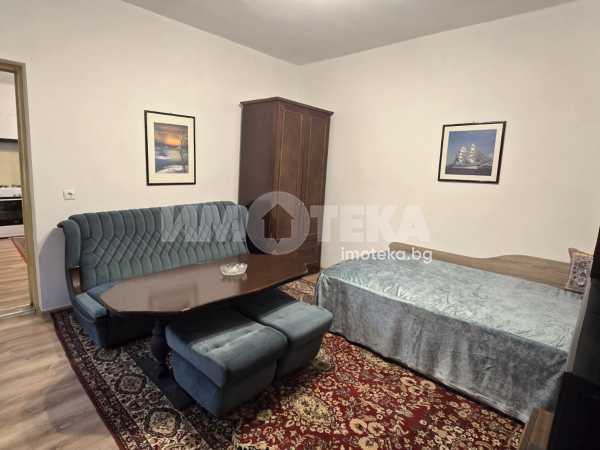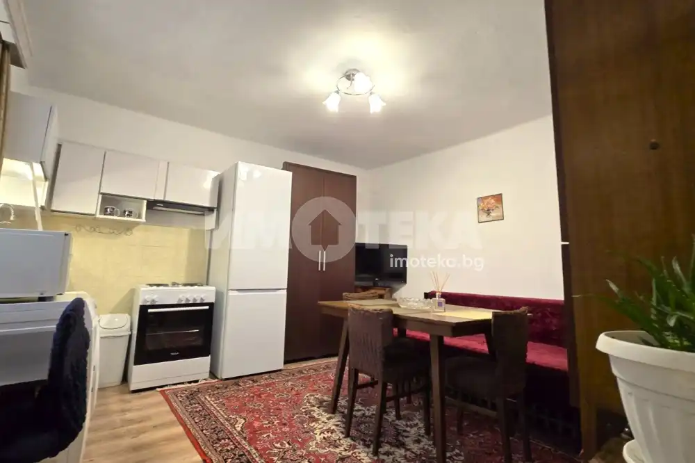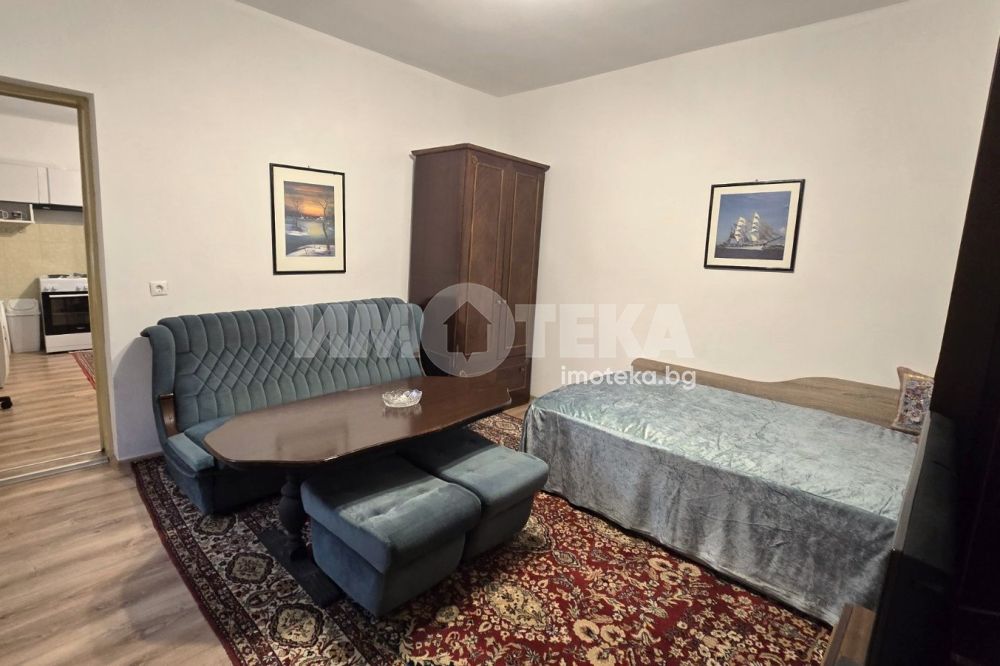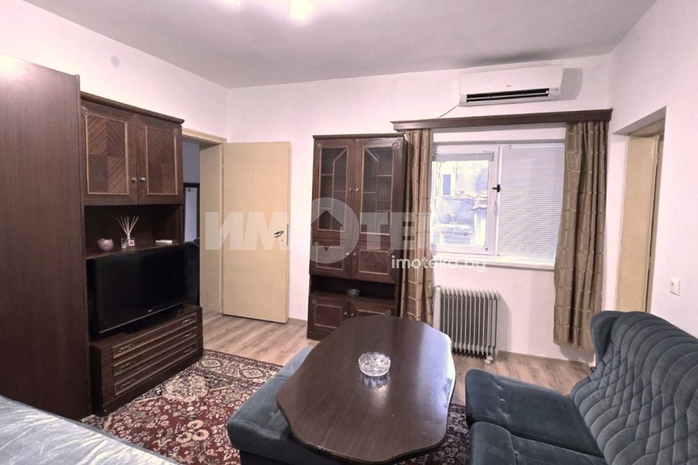Двустаен апартамент, представляващ самостоятелна малка къща в близост до Мак Драйв и Зимно кино Тракия. Състои се от широко и удобно антре, спалня с двойно легло и разтегателен диван, кухня с трапезария, баня с тоалет. Ползва се малък приятен двор, където може да се постави масичка със столчета. Имотът се отоплява с два климатика и е след основен ремонт. Отдава се дългосрочно.