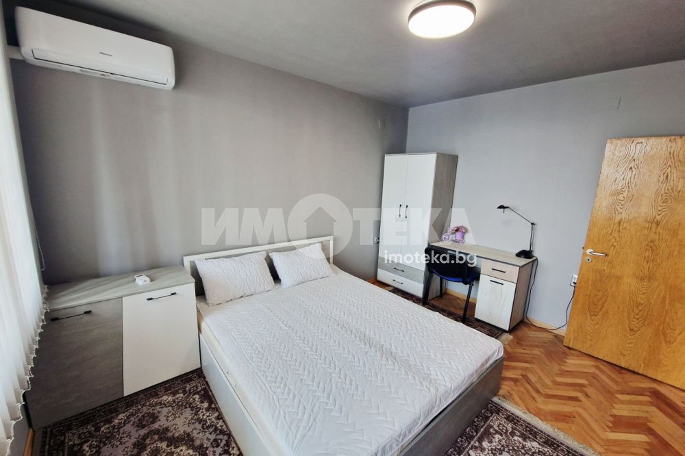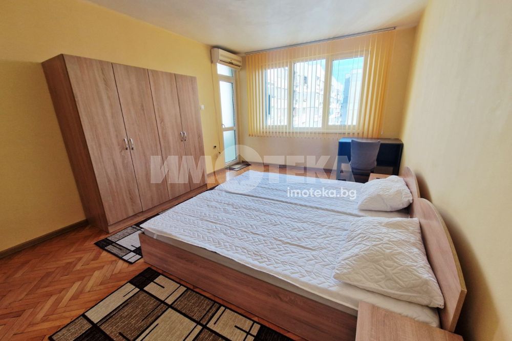 Отдаваме под наем апартамент с три спални в района на Зимно кино Тракия. Състои се от кухня с трапезария, преходен хол с разтегателен диван и прилежащ балкон, три спални, коридор, тоалетна, отделно баня, втори балкон. Отоплението и охлаждането са с три климатика. Ще бъде добавена нова фурна, хладилникът, абсорбаторът, пералнята и бойлерът са нови. В наемната цена за всключени високоскоростен интернет, ЕОН телевизия. Отдава се дългосрочно..