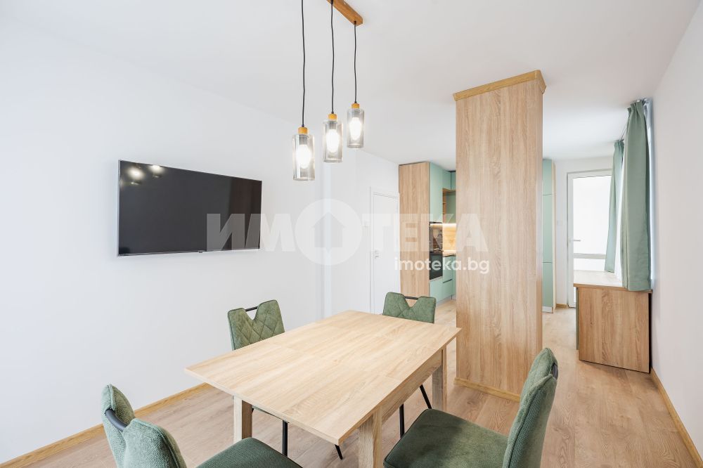 Апартаментът се състои от: голяма кухня с трапезария с излаз на две удобни тераси, хол с тераса, две спални с излаз на тераса, баня, отделно тоалетно и вградена ниша с перално помещение, коридор.