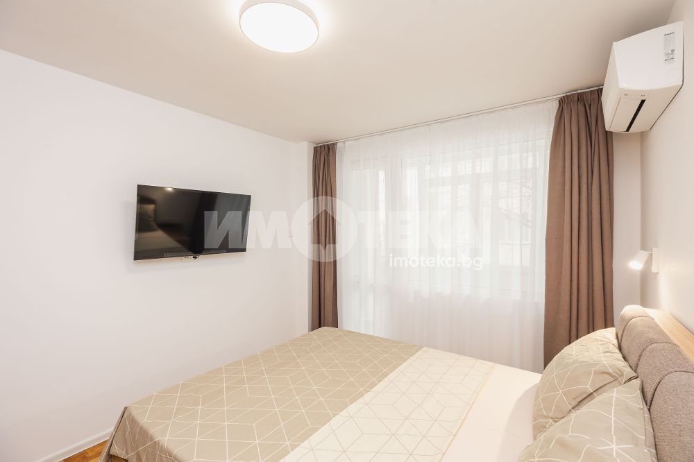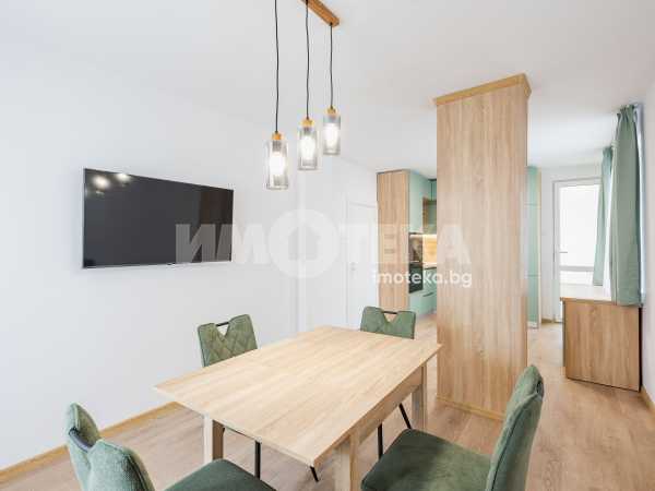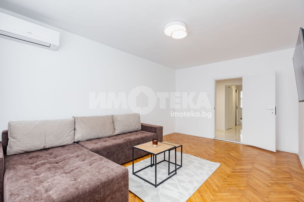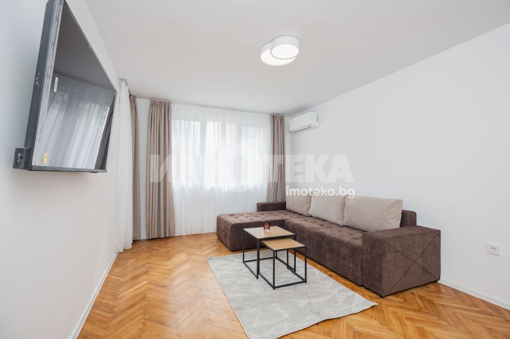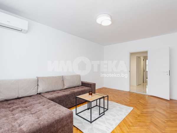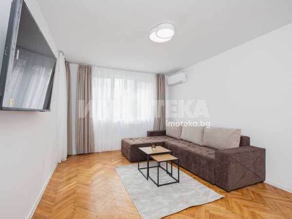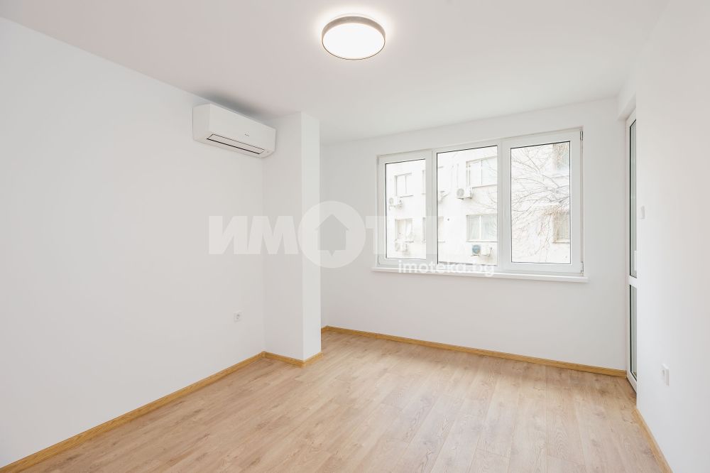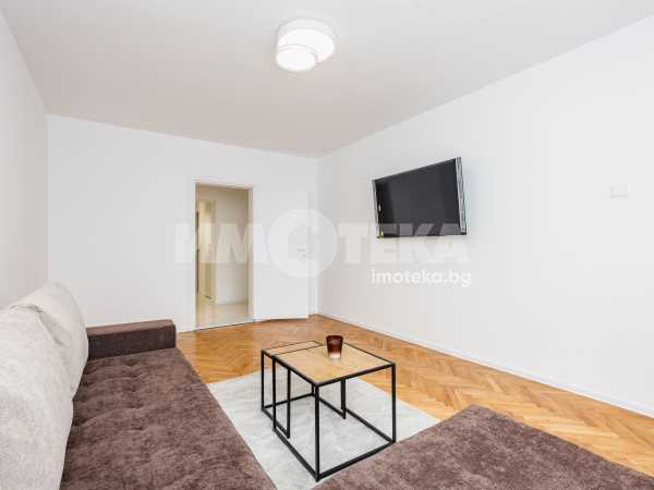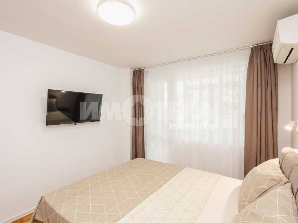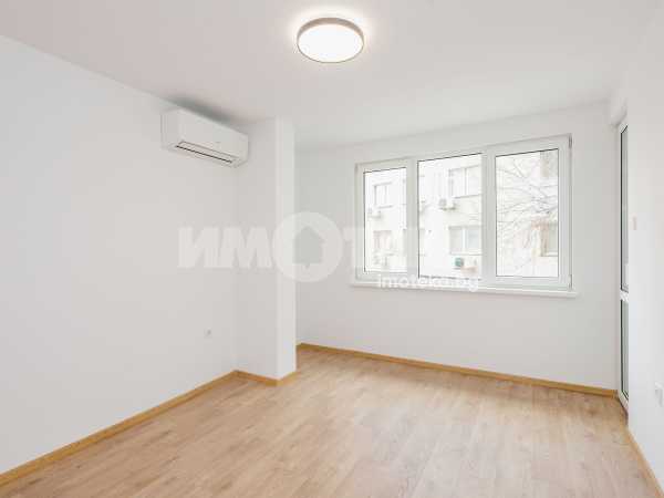 Състоянието на апартамента е след ремонт: сменена дограма и външна излолация, подови настилки естествен паркет, ламинат и гранитогрес в коридора, нова модерна кухня с ел. уреди /пълен набор техника/, трапезарна маса със столове, мека мебел и обзаведена спалня /необзаведена остава само едната спалня/; баня и тоалетна след ремонт и оборудвани.
