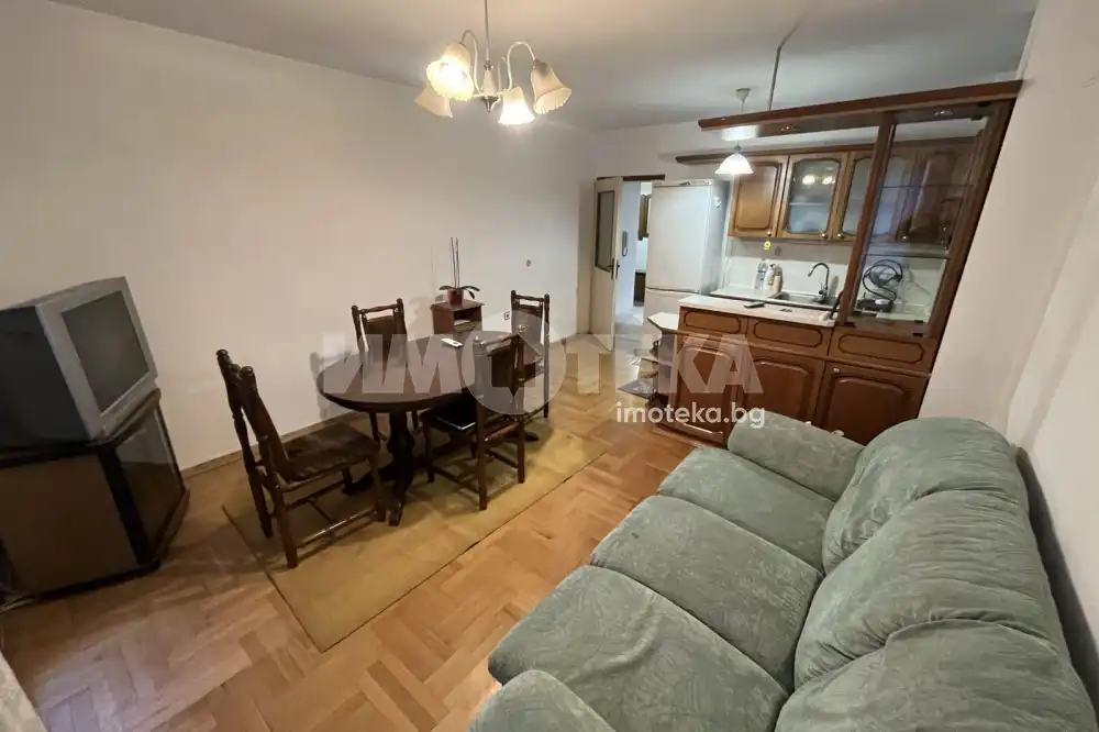 АДРЕС Предлага, тристаен напълно обзаведен апартамент намиращ се в района на зимно кино тракия. Жилището се състои от просторна дневна с кухненска част, която с всички необходими електроуреди, спалня с голямо двойно легло, втора спалня с достатъчно място за съхранение. Две санитарни помещения- баня с тоалетна и отделна тоалетна, както и две тераси.