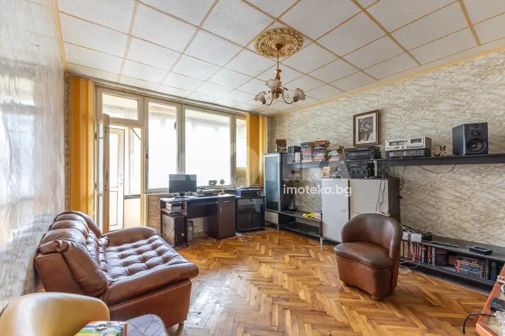 Имотека предлага ексклузивно двустаен апартамент с много потенциал, в тухлена сграда на 3-ти реален етаж, втори жилищен. Апартаментът се състои от голямо входно антре, хол със запазен естествен паркет, тераса пред хола, спалня (13в.м.) с тераса пред нея, кухня 14кв.м. баня с тоалетна и голям килер. Имота е с изцяло източно изложение и с чиста площ от 65,07кв.м. Подходящ за преустройство, подходящ за живеене или инвестиция. Към имота има и маза с площ от 6.5кв.м. Намира се до бул.Владислав Варненчик в района на МакДрайв и спирка Патриарх, в близост до спирки, аптеки, денонощни магазини, училища и детски градини, пешеходно разстояние от центъра на Варна, гранд Мол.