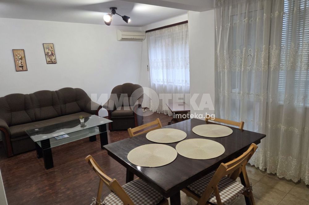 Предлагаме Ви, тристаен апартамент под наем разположен на първи етаж . Разполагаме с едра площ от около 104 кв.м, отличо разпределение за нуждите на всяко домакинство .Състои се от обширна и светла дневна, в която холът и кухнята са обединени в едно общо пространство. две уютни и тихи спални, идеални за почивка, с достатъчно място за големи гардероби и допълнителни мебели.Допълнително предимство е обособеното перално помещение (килер), разполага с отделна баня и отделна тоалетна, което е изключително практично за многочленни домакинства.