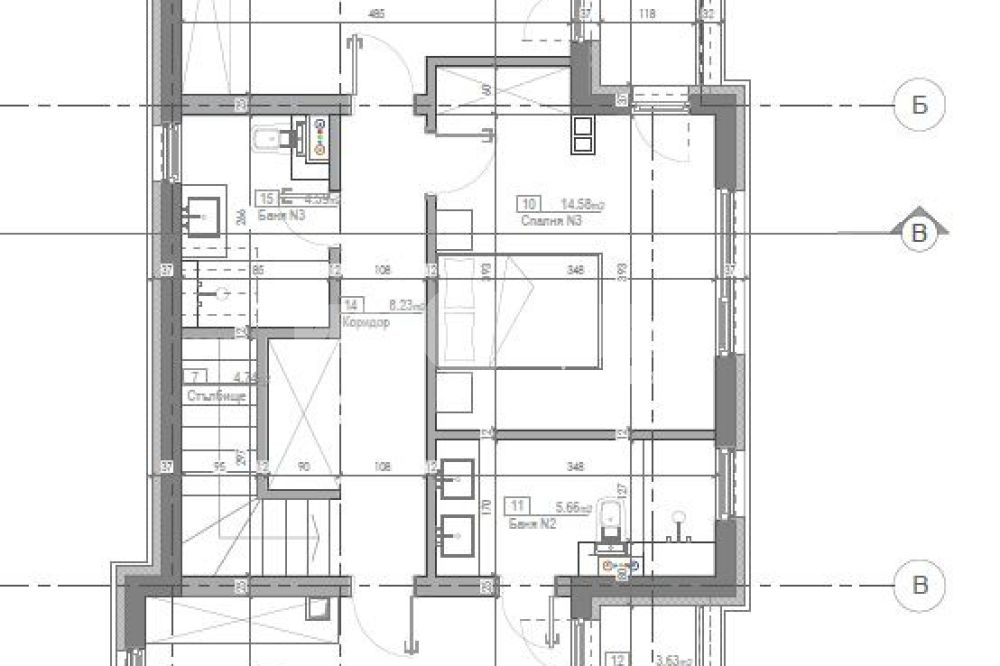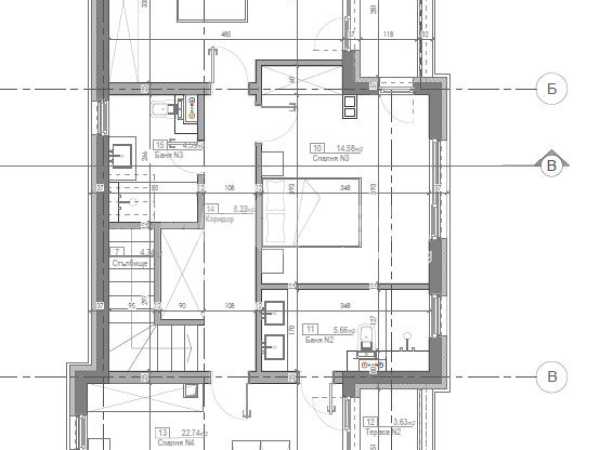 2-ри етаж - 99.62кв.м-три спални, коридор, две бани с WC, две тераси