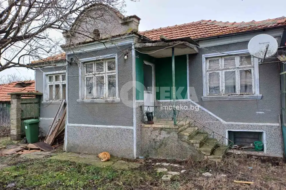 Тухлена къща на плоча с дворно място 2340 кв.м в землището на с. Ветрино с действащи партиди за ток и вода. Къщата е подходяща за две семейства. Състои се от: остъклено антре, коридор, кухня, три спални, вестибюл и санитарно помещение. Подът е дървено дюшаме. Към къщата има голяма маза. Изложение: изток, юг, запад. Към къщата има голям сайвант - 70 кв.м, подходящ за закрита барбекю зона или лятна къща и допълнителни стопански постройки. Самостоятелен тухлен гараж - 21 кв.м. Покривът е здрав. Дограмата е частично подменена. Дворът е голям и равен, с правилна форма, с лице на две улици.