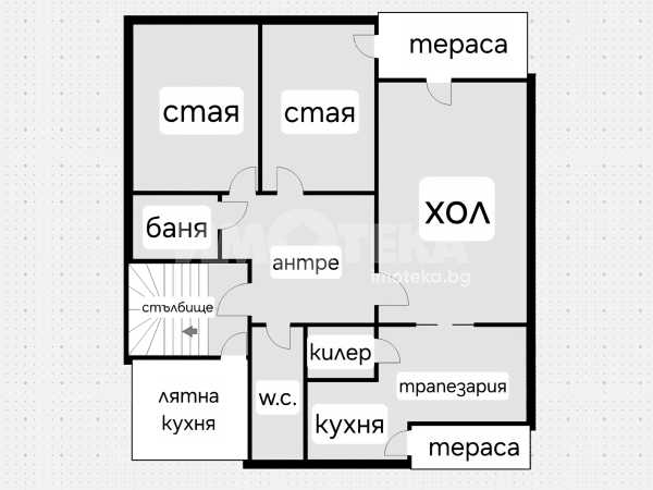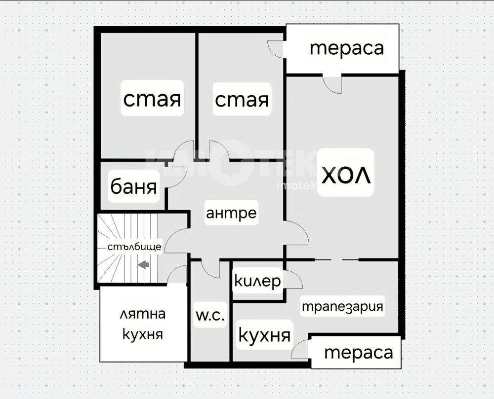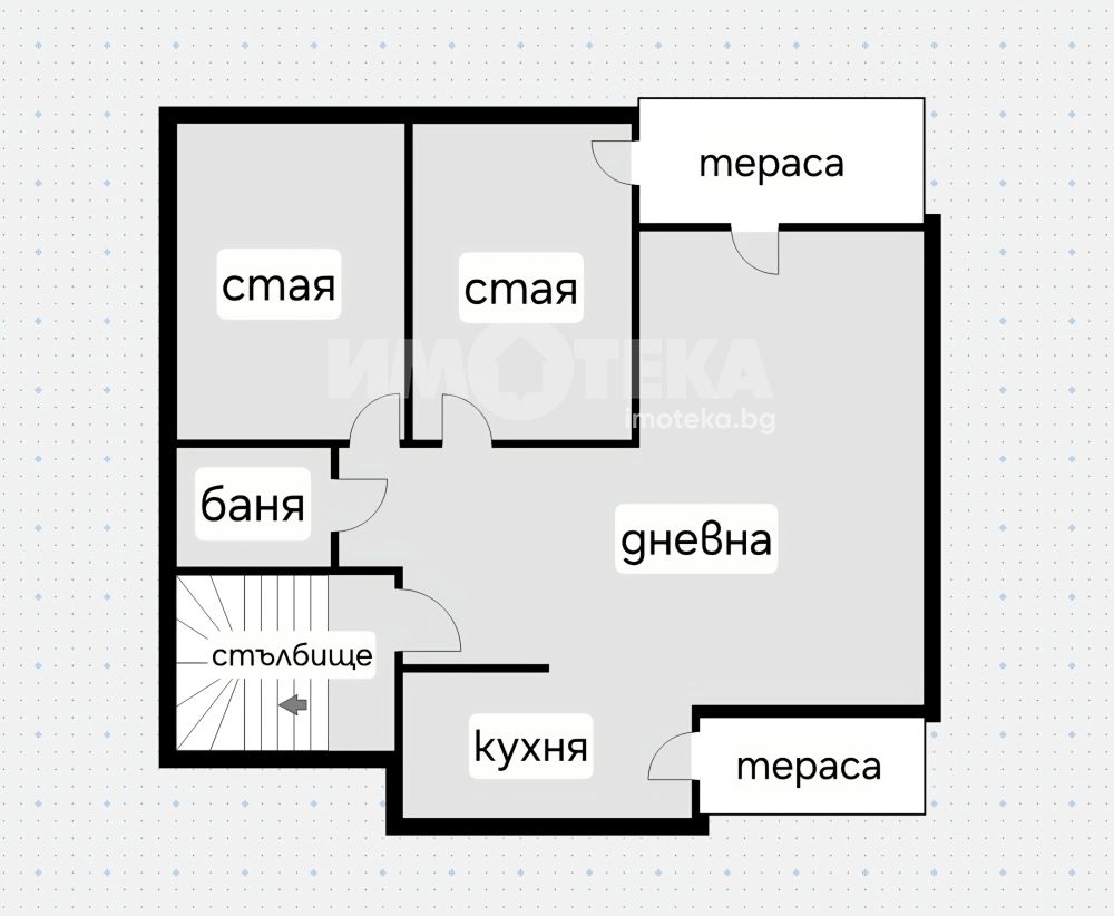 1/2 Къща във Владая. Двуфамилна къща в идеалния център на Владая под наем. Трети и четвърти етаж от къщата с квадратура - 97 кв.м. и 105,90квм. Третият етаж е жилищен тристаен апартамент, четвъртият етаж е таванско помещение с височина 3м, който може да стане на тристаен апартамент. Двор 300 кв.м. Самостоятелен вход със собствено стълбище