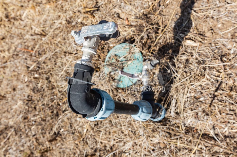 Поливна система за градината с изграден допълнителен хидрофор и контейнер за вода.