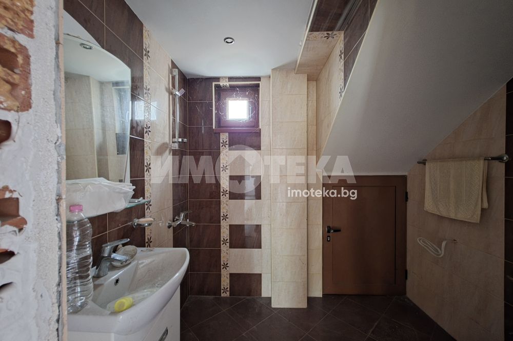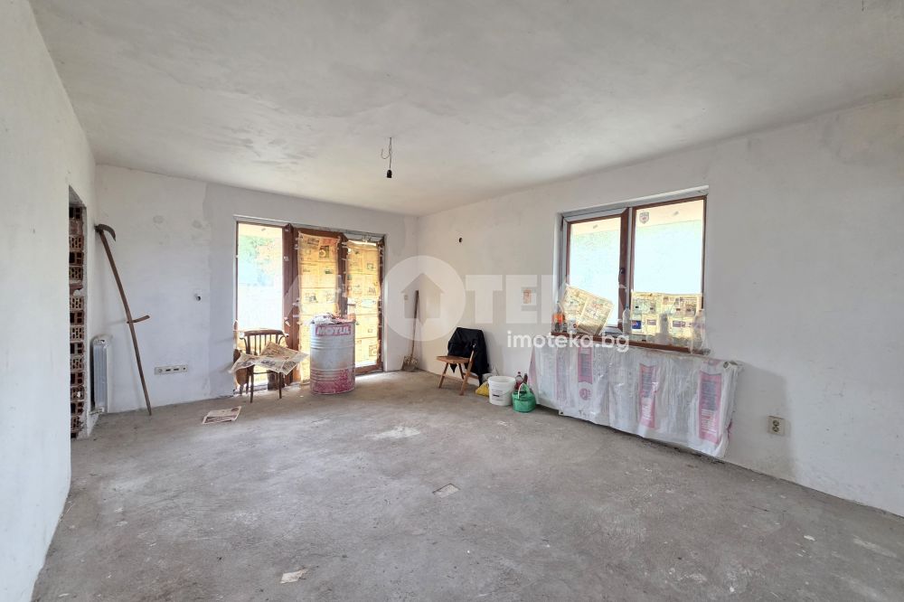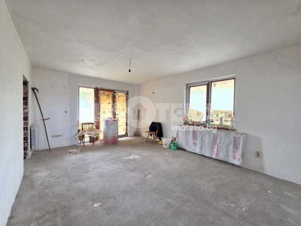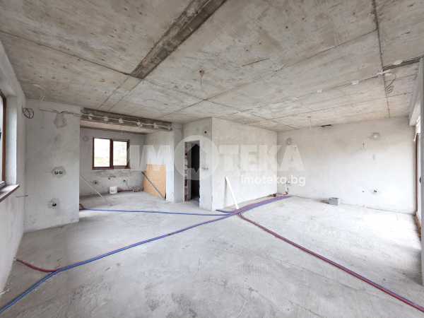 Второ ниво коридор просторна всекидневна с кухненски бокс, три спални, две бани с тоалетни, мокро помещение, две тераси.