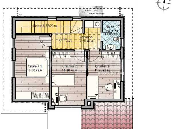АДРЕС предлага новострояща се къща в с.Звездица. На първи етаж са разположени входно антре, просторна дневна с кухненска част - 43 м2, килер, тоалетна, бойлерно помещение. Пред дневната е предвидена голяма, покрита веранда - 18 м2. На втори етаж са разположени три спални - 17 м2, 14 м2, 12 м2 и просторна баня с тоалетна.