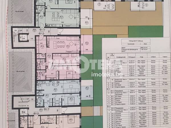 Покривът на сградата е плосък, по детайл на фирмата изпълнител, направена е топлоизолация от XPS 8см, армирана циментова замазка за наклони и PVC хидроизолационна мембрана от най висок клас.