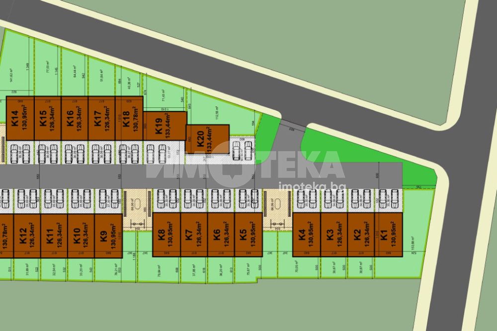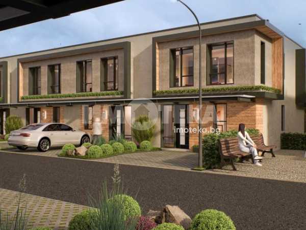 БЕЗ КОМИСИОННА ОТ КУПУВАЧА! Представяме Ви жилищен комплекс, включващ 20 двуетажни къщи от градски тип със самостоятелен двор и две парко места.Разполага с функционално разпределени два етажа, включващи просторна всекидневна, 3 спални, 2 санитарни възела, килер и перално помещение.